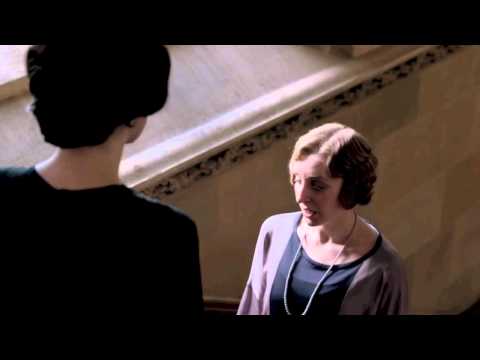 The camera angles and shots are in a very clever set up at this point, as they begin to suddenly switch between the two women. None of them talk, so all of their expression is displayed in their faces and body language. Although there is only 3 shots in which there is no talking, the atmosphere tension rises up another level when Edith finally breaks the silence. She does this, and at the same time, makes an excuse to leave Mary and walk up the stairs. It isn't until Edith has walked past Mary, that the common sarcasm between the two sisters is seen. "Have a happy time'', spoken words of Mary. My theory is, that Mary said this to make Edith feel sorry for her. She's thriving off of other people's sadness at the moment, and doesn't believe how anyone can be happy at the moment, because she isn't.